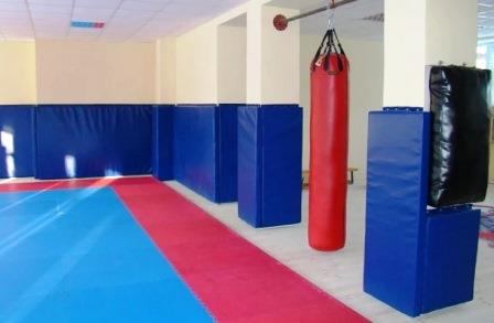 Стеновой протектор навесной служит для обкладки стен в спортивных залах с целью защиты от травмирования при занятиях спортом. На заказ можно изготовить съёмные мягкие протекторы для спортзалов любой конфигурации и размера.