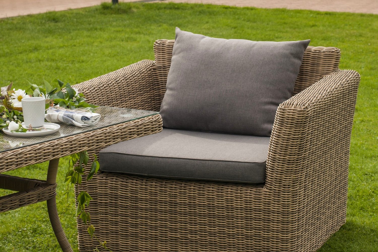 Кресло Капучино – одно из таких уличных кресел. Его внешний вид позволяет установить его и дома – дизайн кресла практически ничем не отличается от обычных, домашних кресел, однако оно будет гораздо прочней. Состоит кресло из алюминия и искусственного ротанга – первый является каркасом, а второй оплеткой.