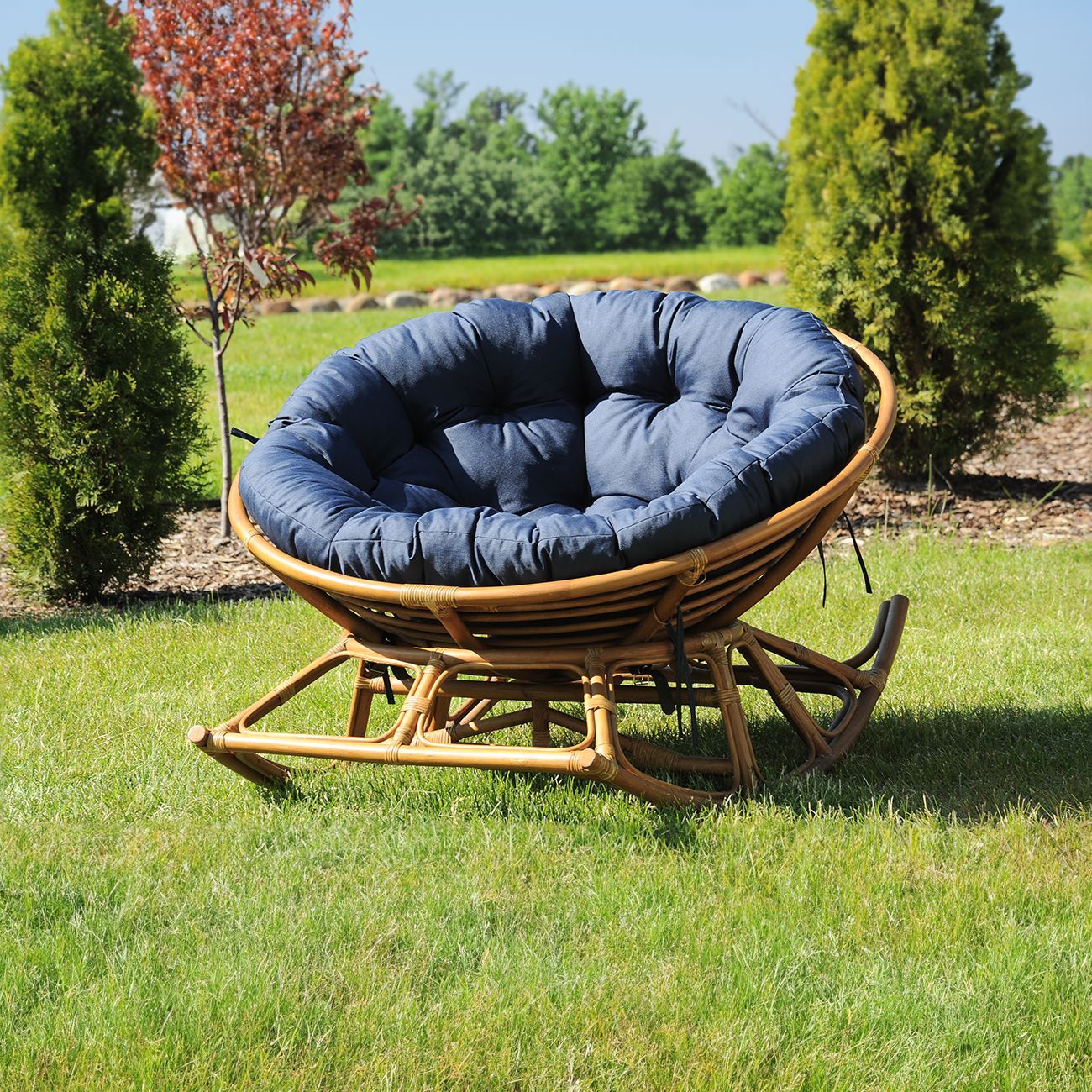 Подушка круглая (Папасан) 110 см, синяя (Рипстоп)