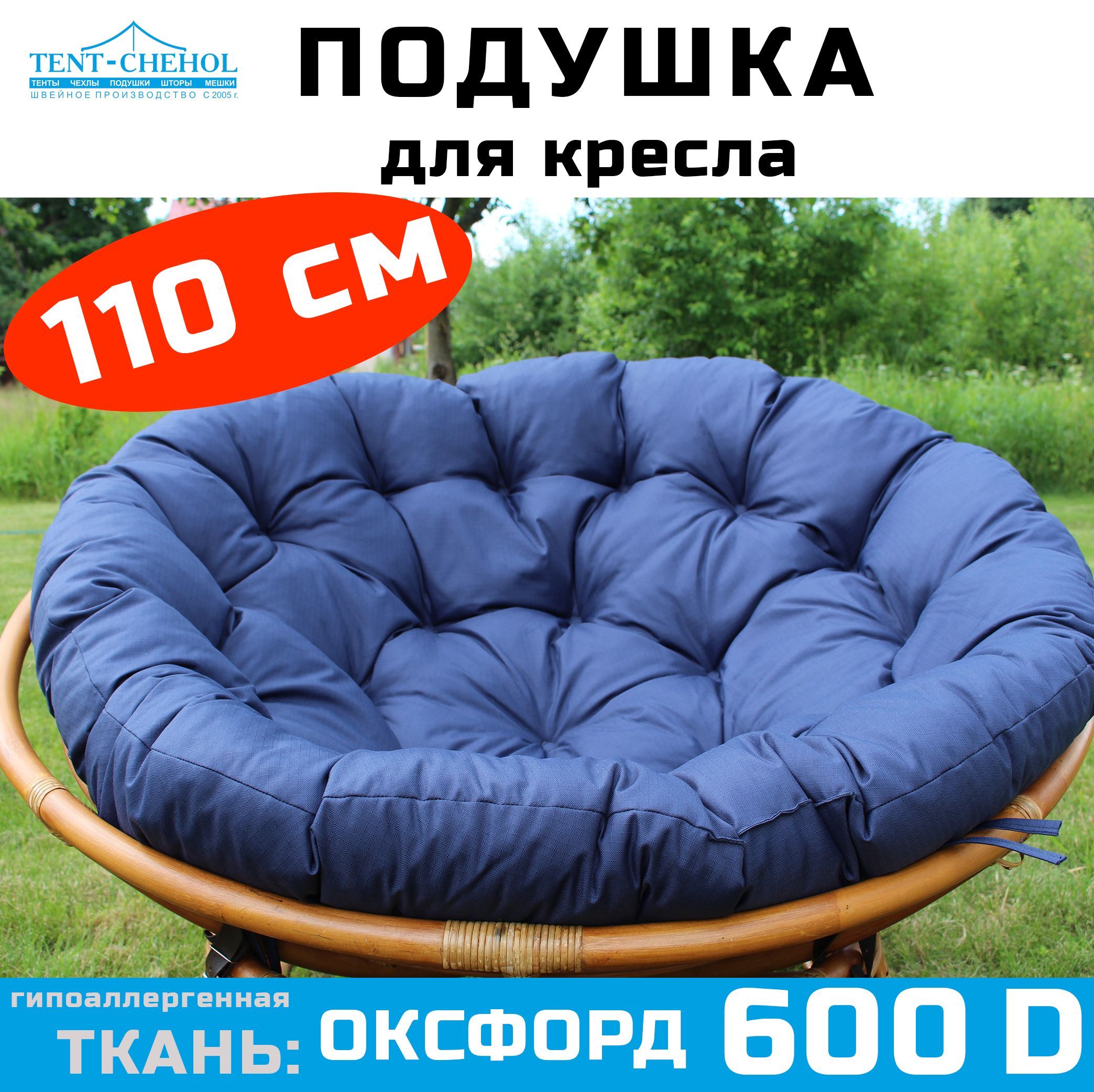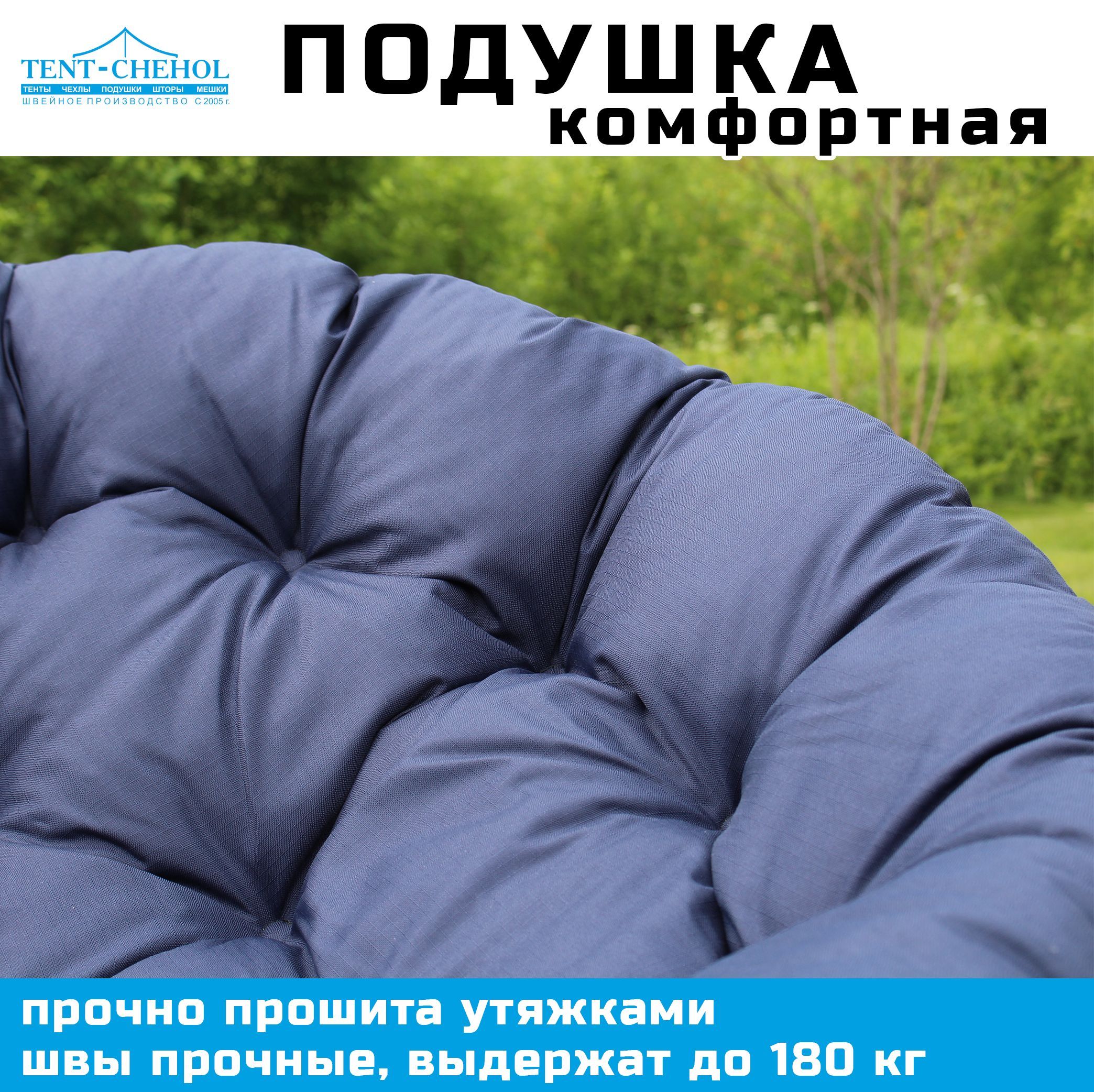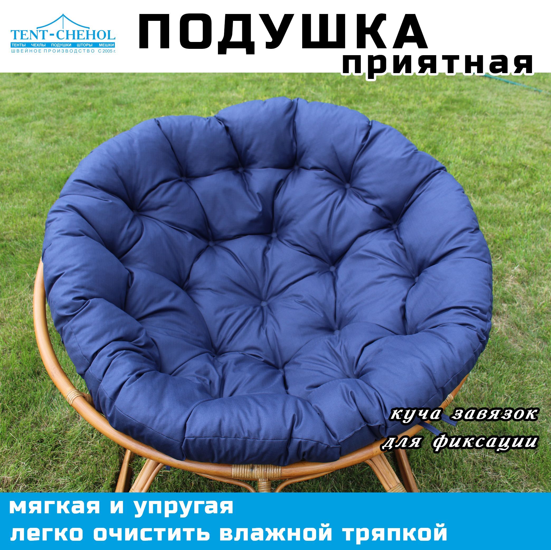 Купить Подушка круглая (Папасан) 110 см, синяя (Рипстоп) цена 3500 руб. в Москве и СПб с доставкой по России