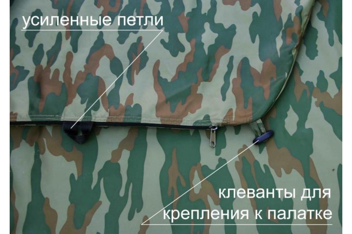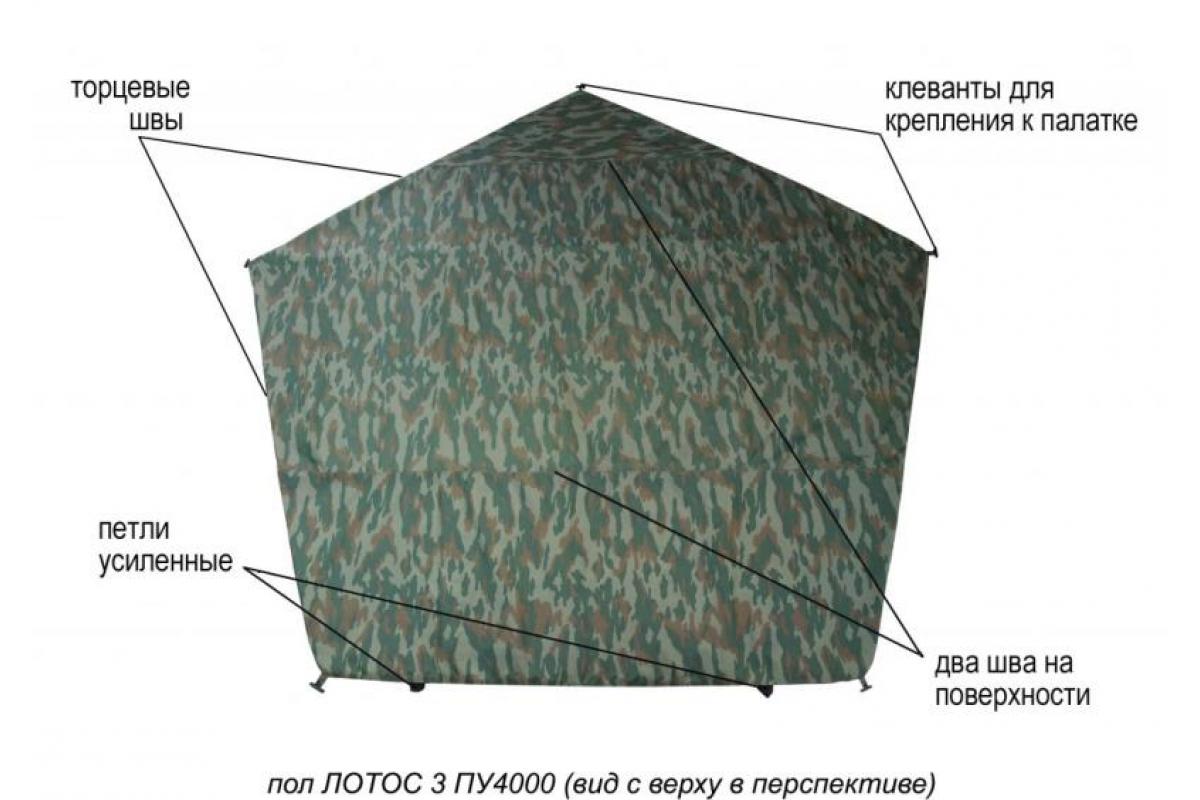 Данный утеплённый пол нужен для палаток, которые собираются на стандартных каркасах. У такого пола форма пятигранника, он способен закрыть абсолютно всю поверхность палатки. Данный пол прикрепляется при помощи пуговиц к петлям, которые располагаются на всех углах палатки. Благодаря этому накрывается внутренняя часть палатки, ветер не проникает в палатку.
