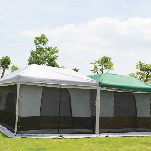 Это сетки для шатра, устанавливаемого на улице. Длина этих стенок составляет 1,9 метра, а ширина составляет 3 м. Изготовлены такие сетки из качественной ткани, имеющей покрытие. У них бежево-серый цвет. Это сетка, которая сможет защитить от комаров, а также частично от солнца. У сетки есть две молнии, предназначенные для входа. Это очень надежная и качественная ткань, имеющая специальное покрытие, может предотвратить попадание прямых солнечных лучей в беседку. Для палатки отводится огромное пространство, которое может вместить несколько человек. Благодаря сетке шатер хорошо защищает от внешних воздействий. Это прозрачная ткань, которая при этом защищает от солнца. Прикрепляется она к каркасу при помощи специальных крючков.
