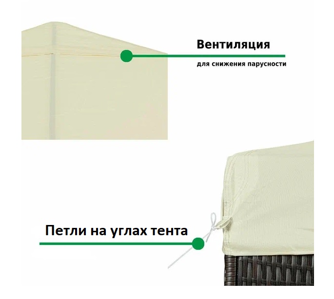 Это комплект тента-крыши GREEN GLADE YF-3176, выполненный в бежевом цвете. Его размеры составляют 300 х 300 х 250 см, а вес 36 кг. Изготовлен данный шатёр из полиэстера плотностью Оксфорд 240 ден с покрытием из поливинилхлорида. В комплекте находятся стены для шатра, противомоскитная сетка, а также крыша. Такой шатёр сможет защитить вас от солнца, осадков, а также насекомых.